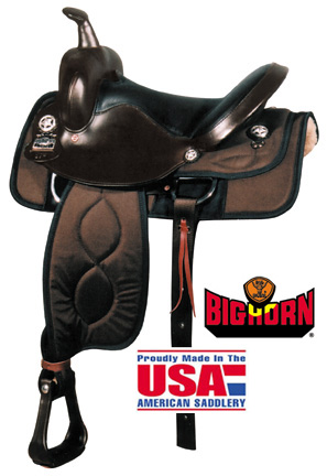 Big Horn 17" synthetic Saddle with full quarter horse bars in Brown. Ralide Flexible Tree with Full Quarter Horse Bars, 5" Cantle, & Dual Denstiy Foam Seat Padding.